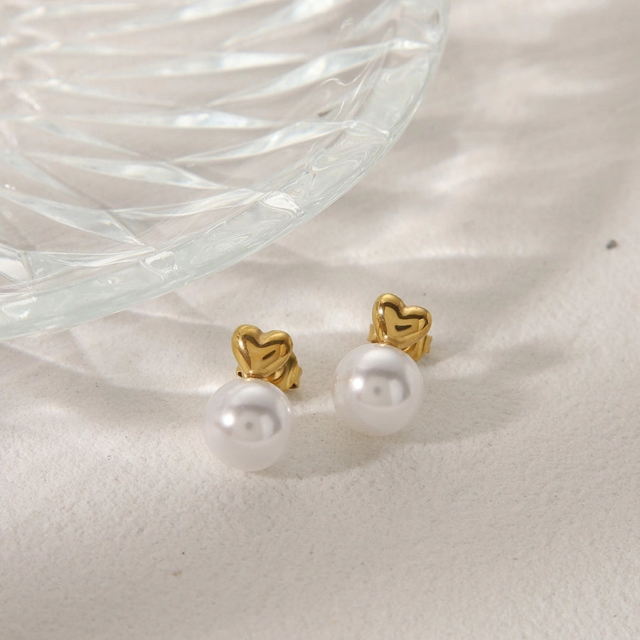 Aretes broqueles con perla y corazón