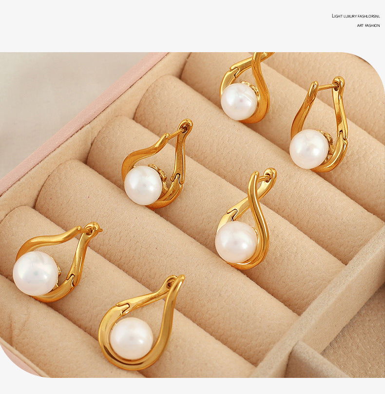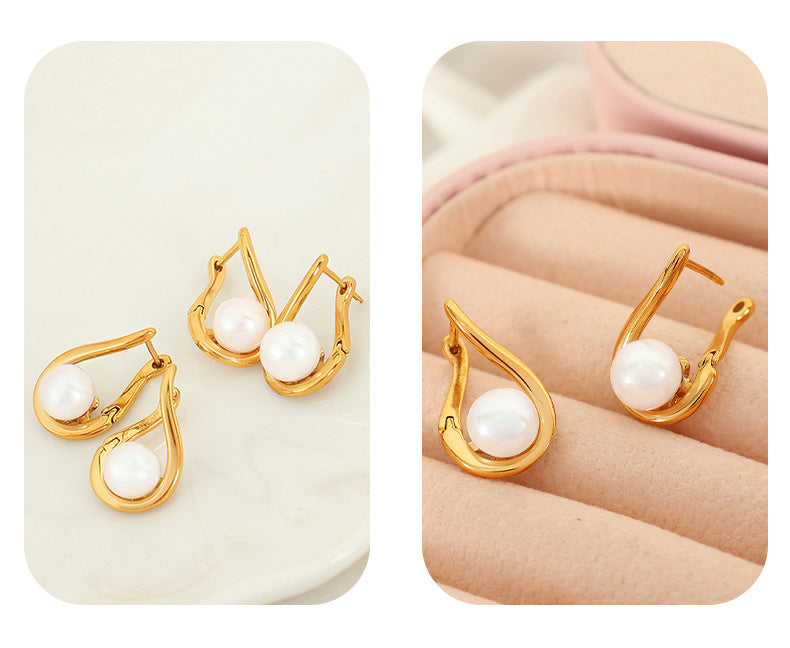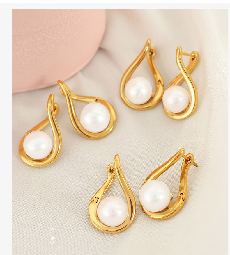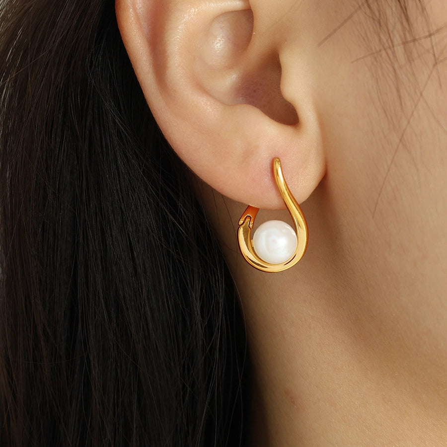 Aretes elegantes con perla en forma de gota
