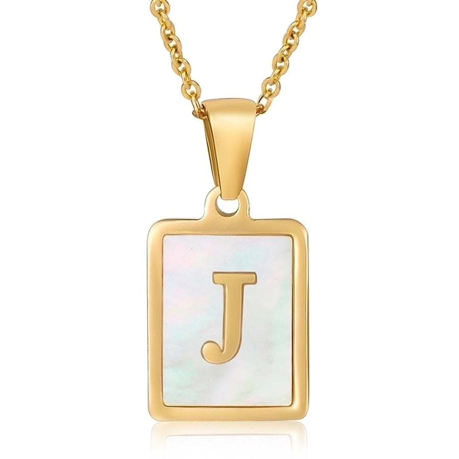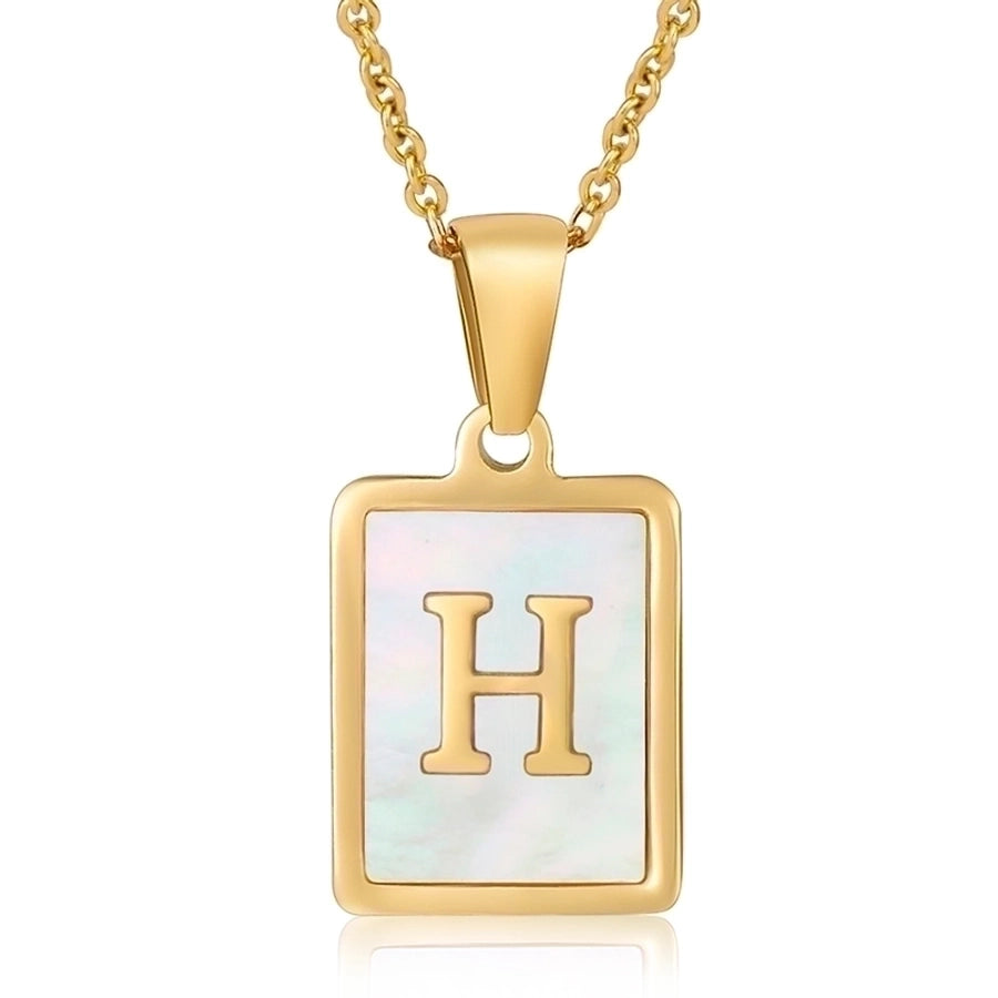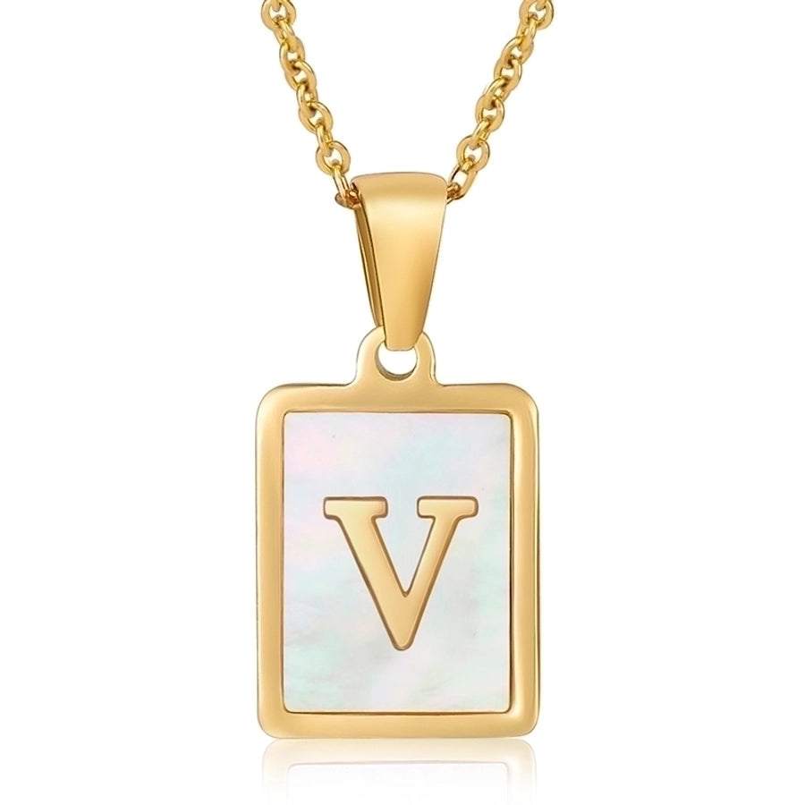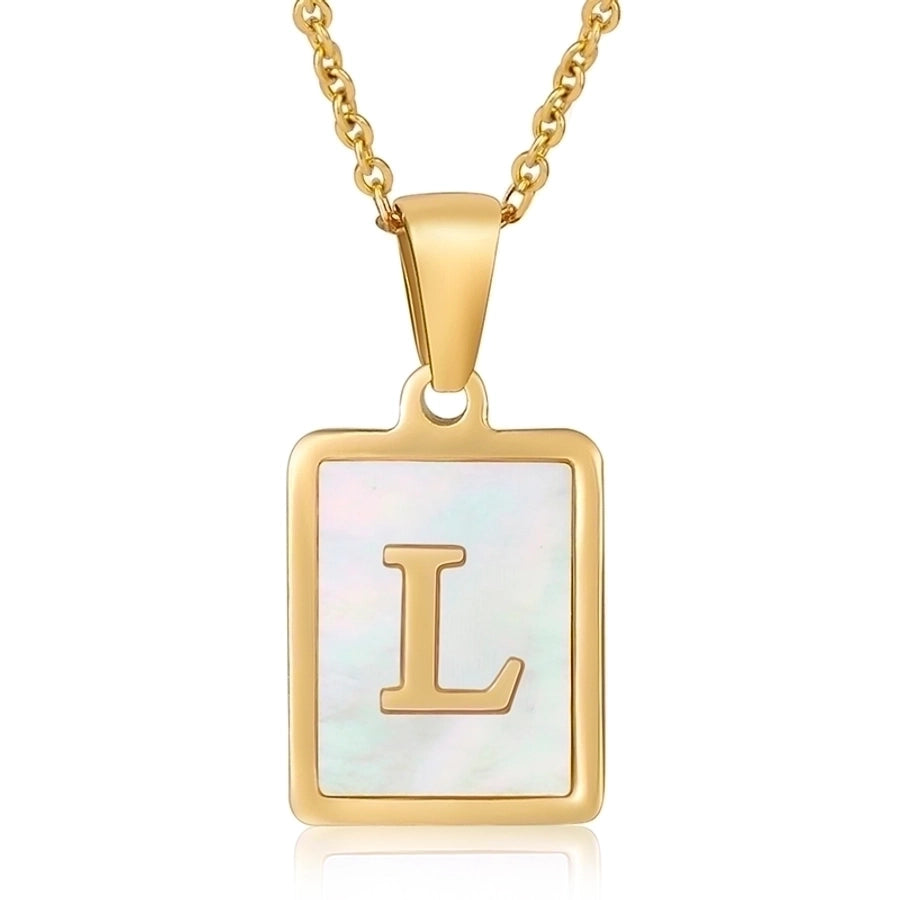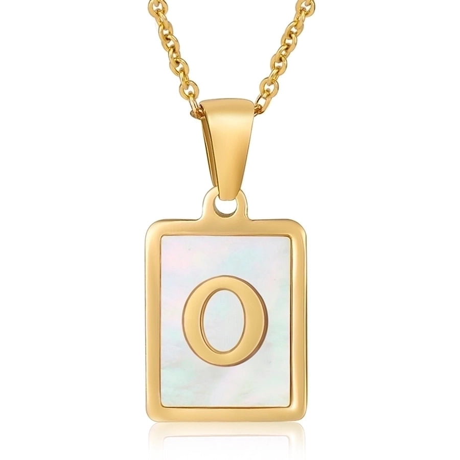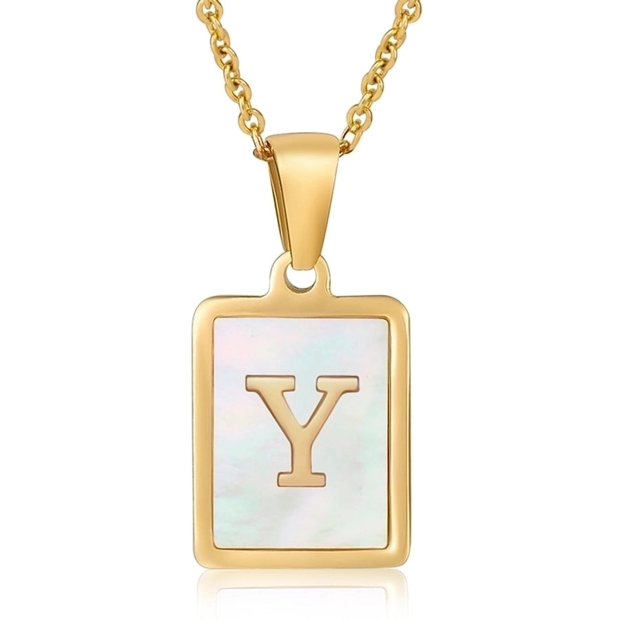 Iniciales diseño rectangular madre perla y acero inoxidable