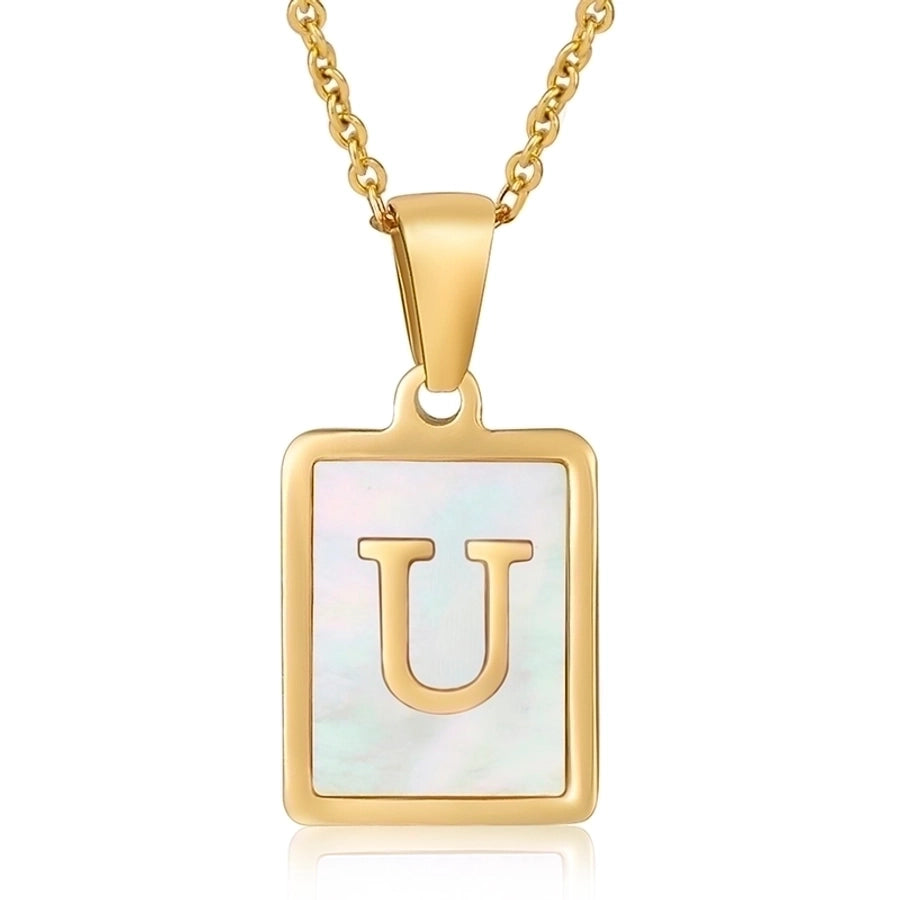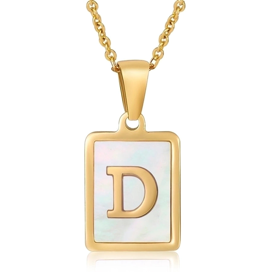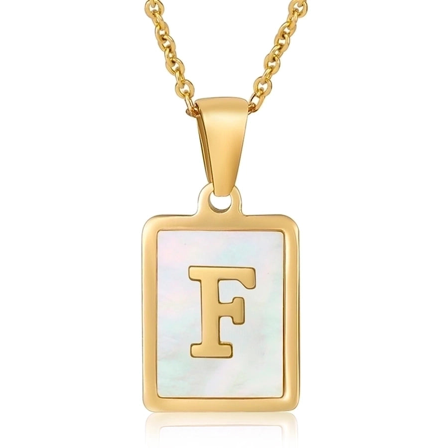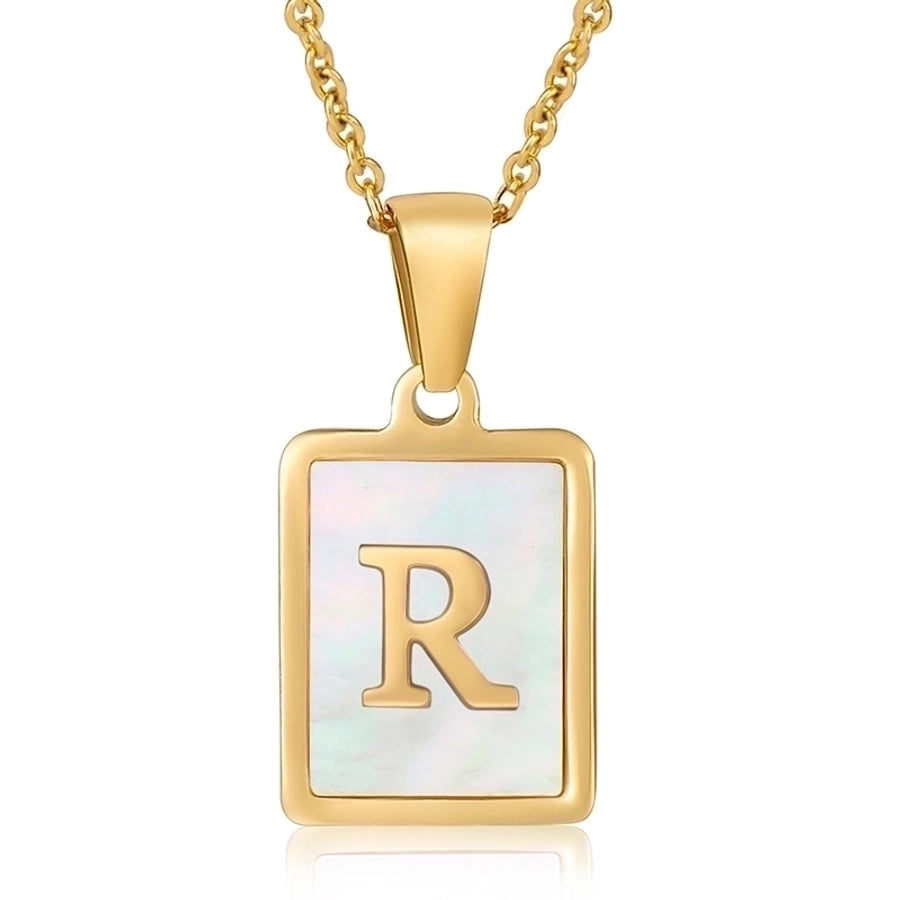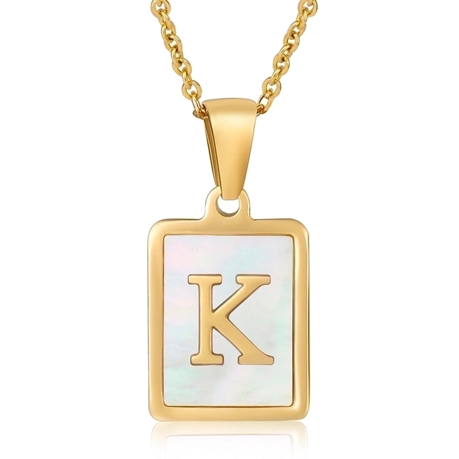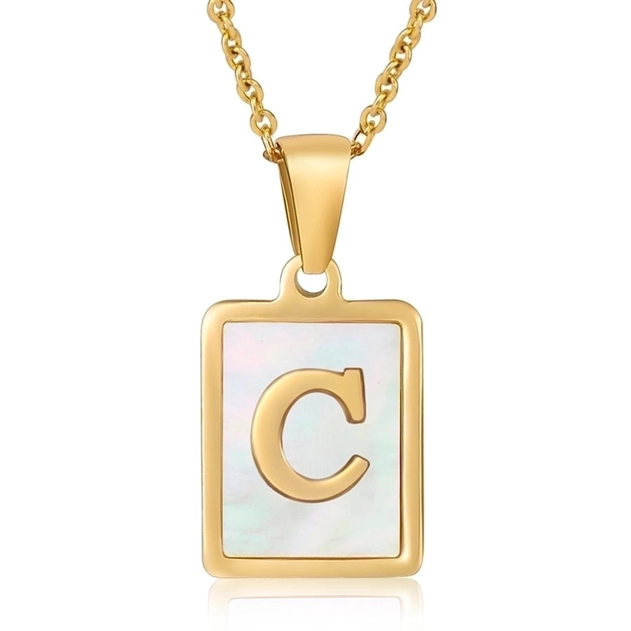 Iniciales diseño rectangular madre perla y acero inoxidable
