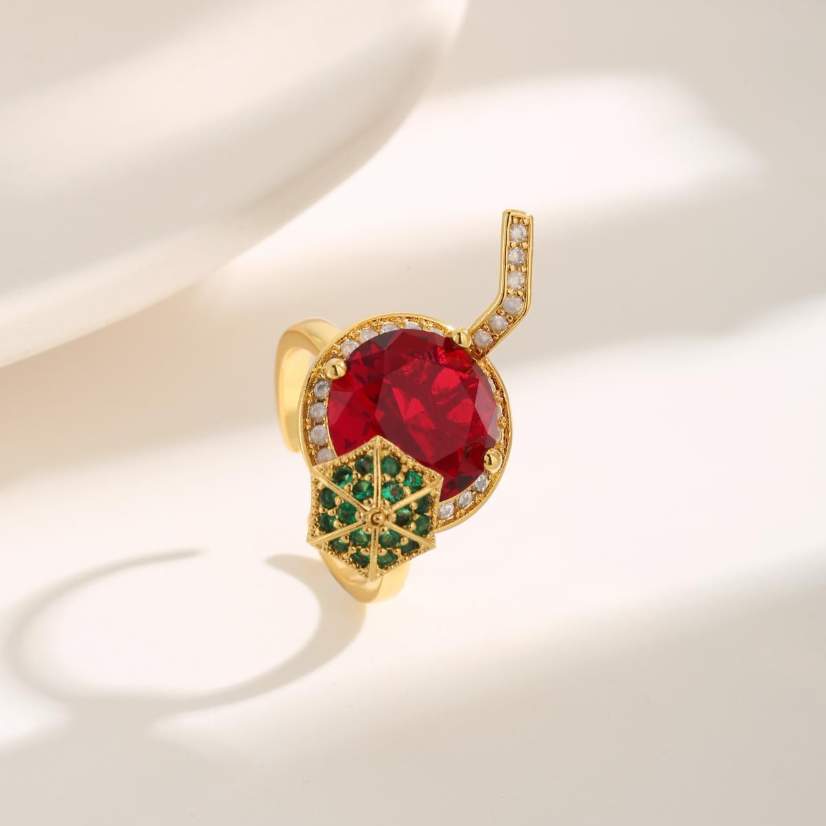 Anillo de chapa de oro de 18k en forma de cocktail refrescante en color rojo. Perfecto para lucir en diferentes ocasiones.