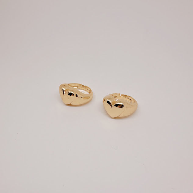 Anillo de Chapa de oro tipo chunky con forma de corazon, la carita está formada con pequeños diamantitos. Perfecto para añadir un toque de diversión y ternura a tu look..