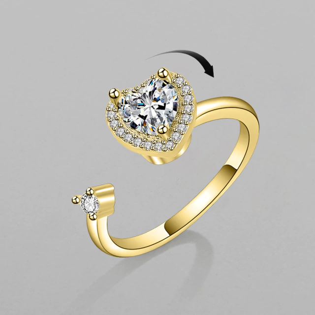 Anillo de cobre dorado con circonias ajustable giratorio anti estrés. Olvídate de la ansiedad y luce tu anillo favorito.