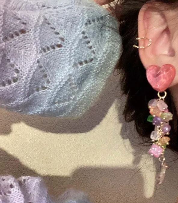 Aretes de resina en forma de corazón con pequeñas piedras multicolores. La opción perfecta para destacar con estilo y originalidad.