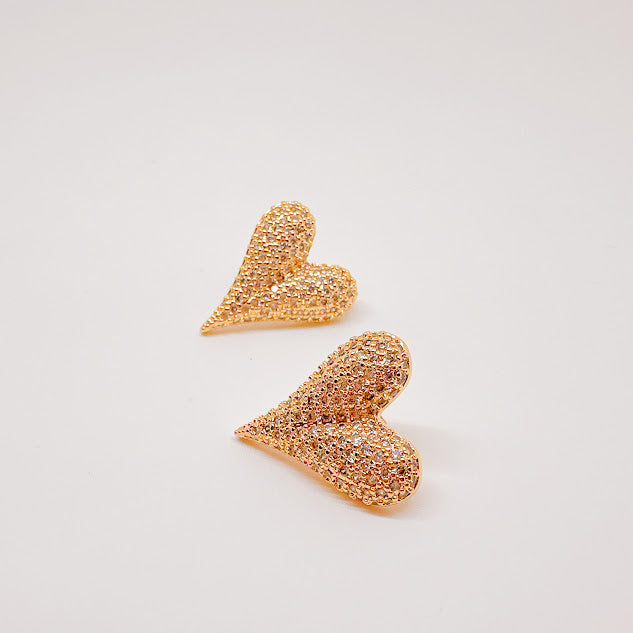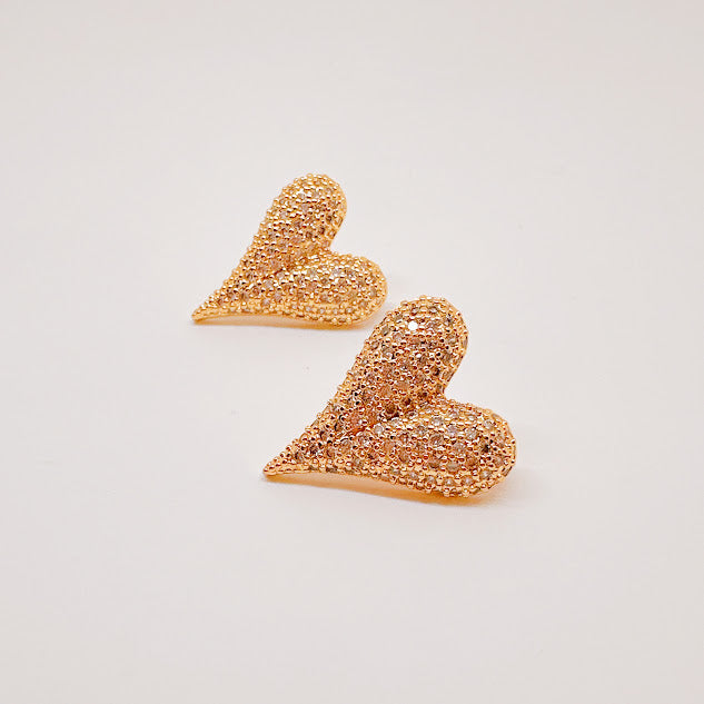 Aretes de acero inoxidable en forma de corazón de color dorado, adornado con pequeñas circonias.¡Haz que cada momento sea especial con estos deslumbrantes aretes!
