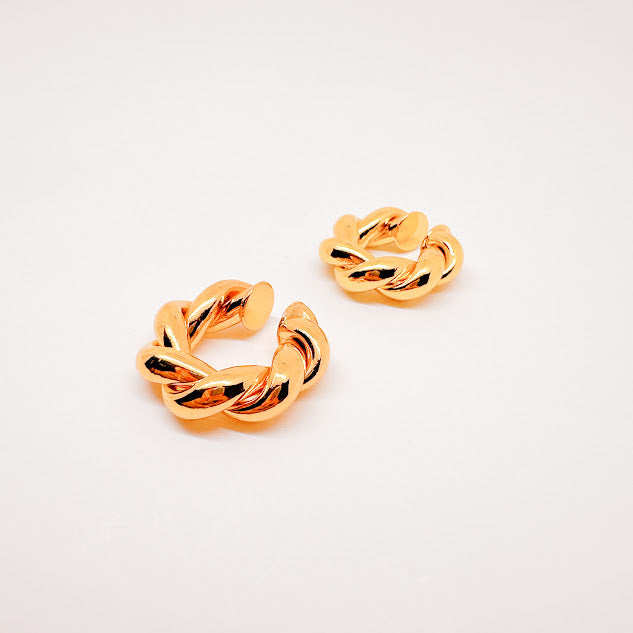 Aretes earcuffs trenzados de acero inoxidable en color dorado. Son todo lo que necesitas para agregar ese toque especial a tu outfit.