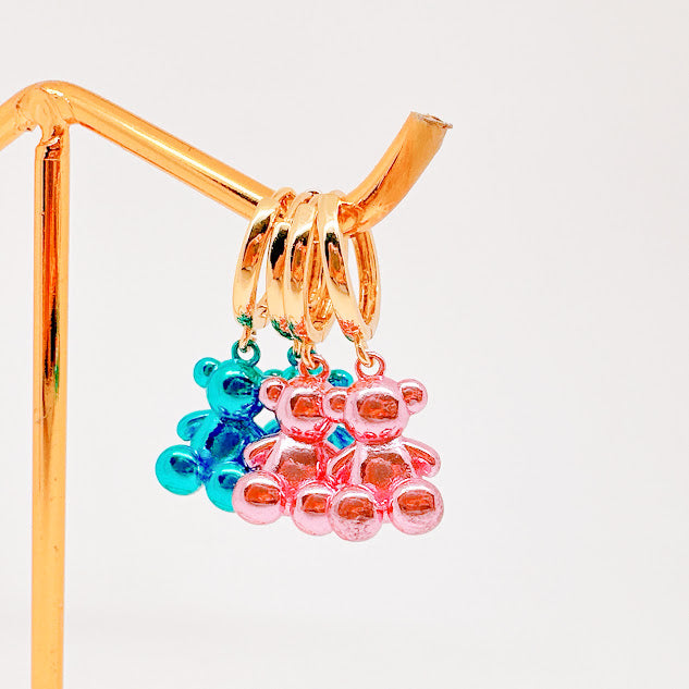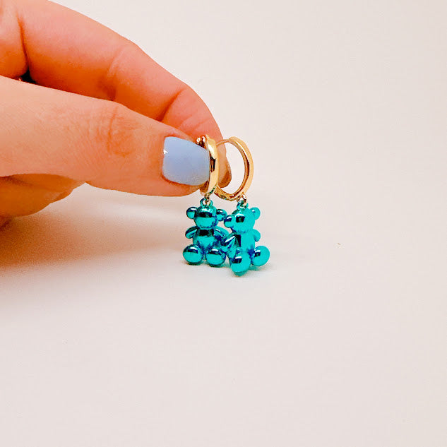 Aretes de acero inoxidable en forma de osito adorable en color azul. Perfectos para añadir un toque de diversión y ternura a tu look.