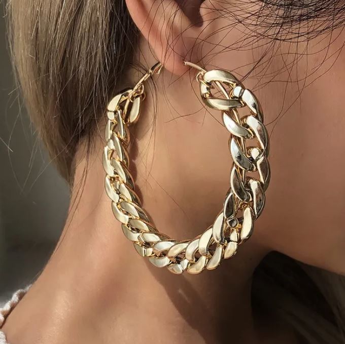 Arracadas de aleación con diseño entrelazado en color dorado. Una pieza versatil que complementa cualquier estilo y ocasión.