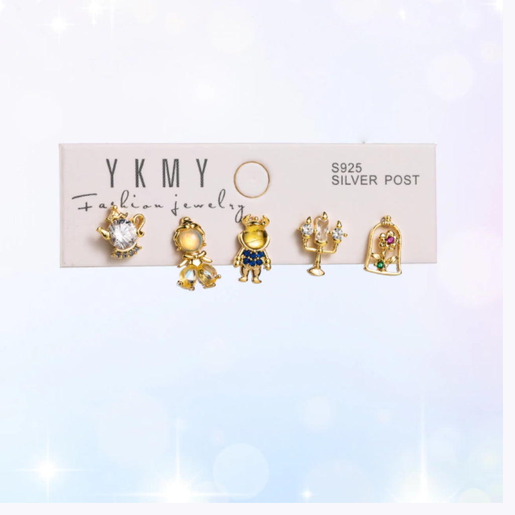 Broqueles de La Bella y la Bestia Disney dibujos animados chapa de oro