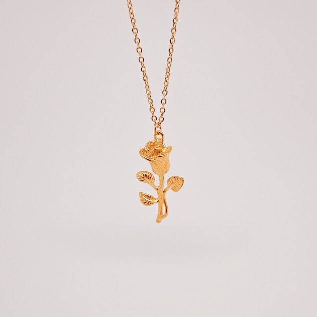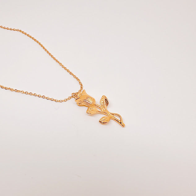 Collar doble de acero inoxidable de color dorado con dije en forma de rosa. Eleva cualquier look con el toque floral y encantador de esta pieza.
