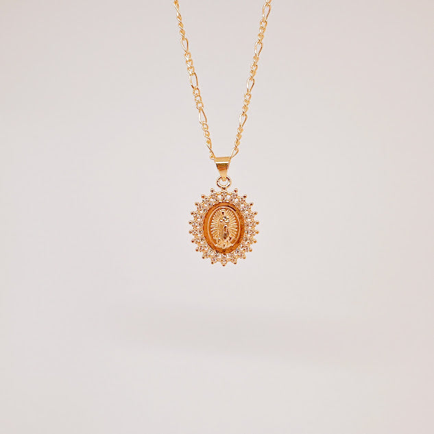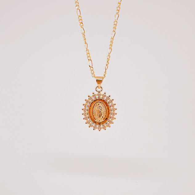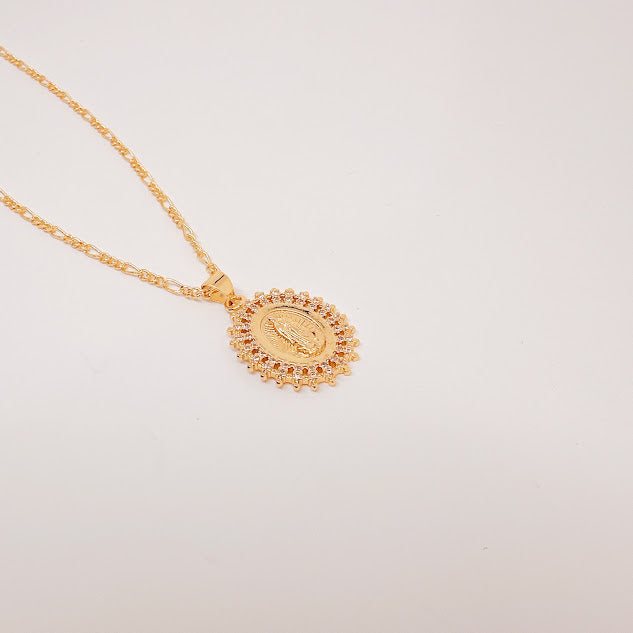 Collar de acero inoxidable de color dorado con dije de Virgen de Guadalupe. Luce increible en tu dia a dia con este collar que combina simbolismo y espiritualidad.