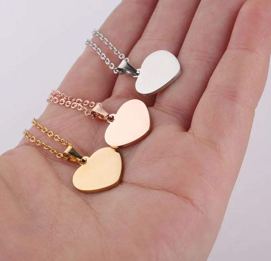 Expresa tu amor de manera única con este delicado dije de corazón en acero inoxidable. Su diseño pequeño y elegante lo hace perfecto para personalizar con un grabado especial que guarde tus momentos más preciosos.