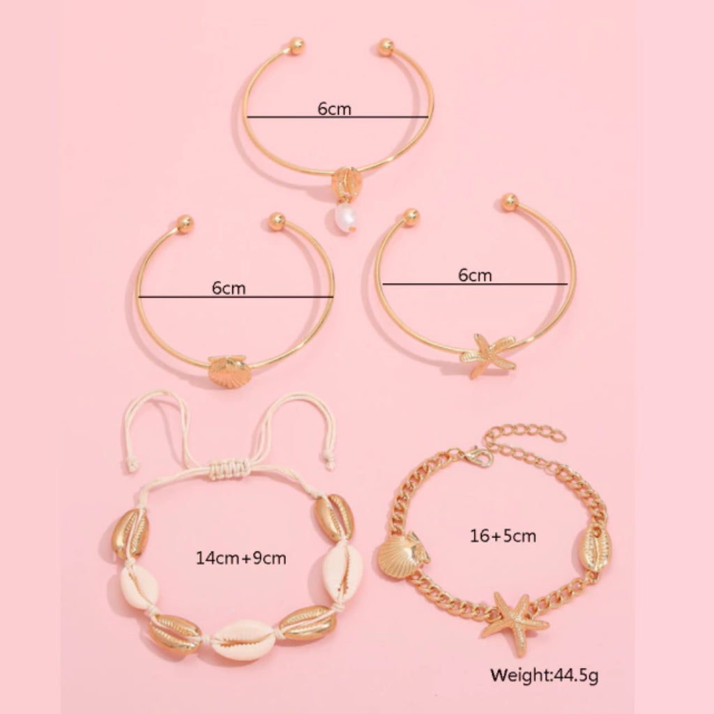 Kit pulseras de conchas de mar estilo urbano.
