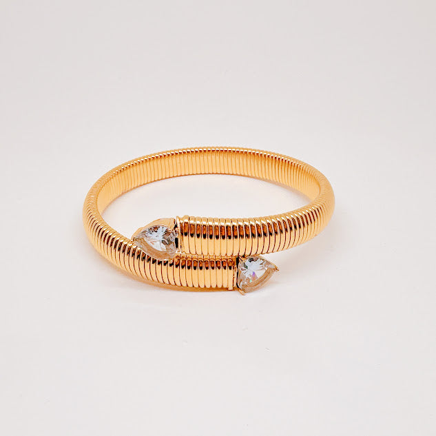 Pulsera piel de serpiente de acero inoxidable en color dorado, adornada con piedras blancas. Luce sofisticada y a la moda con esta pulsera que no pasará desapercibida