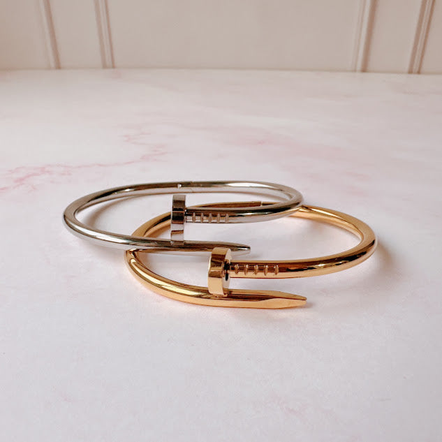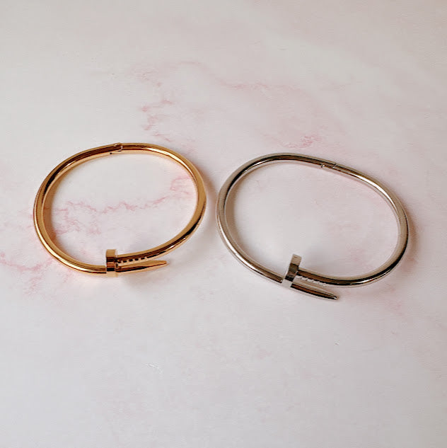 Pulsera de acero inoxidable con forma de clavo en color plateado. Luce sofisticada y a la moda con esta pulsera que no pasará desapercibido